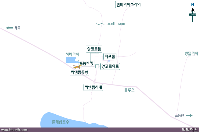 올드 마켓의 메인 거리인 펍 스트리트에는 서양 음식과 캄보디아 음식을 파는 전문 레스토랑이 많아서 이곳에서 휴식, 식사를 하는 분이 많다. 통합 매표소 가는 길에 앙코르 국립 박물관이 있다. 태국 국경 가는 6번 국도에 캄보디아 민속촌과 씨엠립 공항이 있다.
