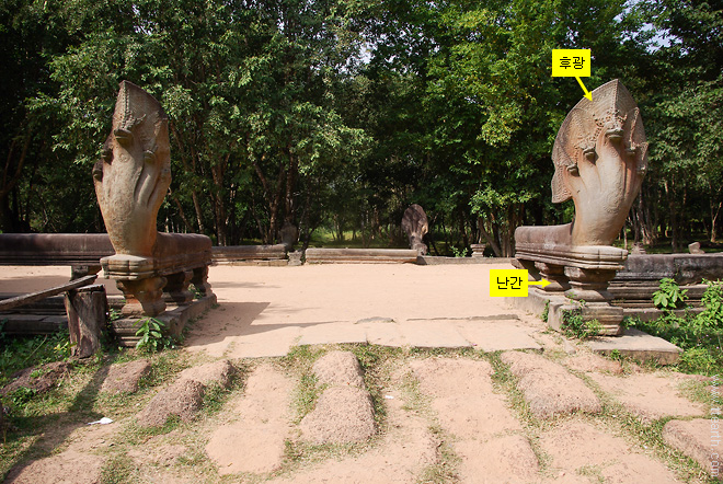 벵 밀리아 남쪽 참배로 초입에서 중간쯤 오면 해자가 없음에도 참배로를 따라 다시 나가 난간이 시작된다. 이전 시대인 바콩의 나가는 난간이 없으며, 후광이 없으며, 나가의 길이는 해자의 길이와 일치 하였다. 쁘레하 비헤르 이후부터 나가의 난간이 생겼고, 나가의 길이도 참배로까지 연장되었다. 사진의 나가라고 적힌 곳으로 가서 자세히 보면...