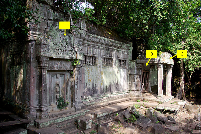 중앙 성소 동쪽 제1회랑 안에는 가루다를 타고 있는 비슈누 신을 조각한 린텔이 돌더미 속에 놓여있다.
