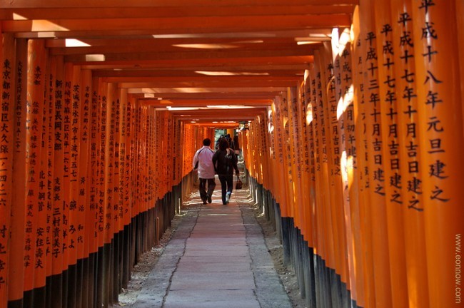 후시미 이나리 타이샤는 전국 3만여개의 이나리 진쟈의 본궁이다. 곡식의 신(오곡의 신)인 우카노미타마노카미(이나리)를 모시는 곳으로, 여우가 신의 전령이다. 산꼭대기까지 이어진 토리이들로 유명하다. 진쟈를 대,중,소로 나눌 때 큰 진쟈를 타이샤라고 한다.