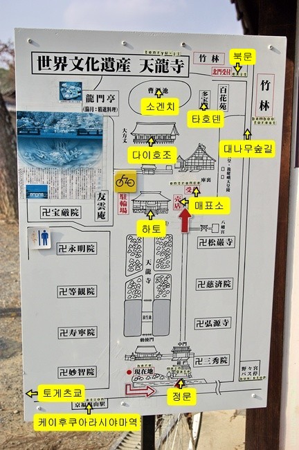 텐류지 경내도. 북문으로 나가면 대나무 숲길이 나온다.