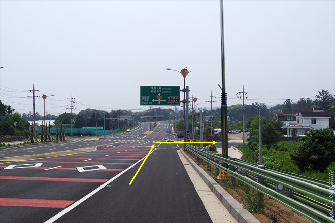 엉또 폭포 표지판과 오른쪽의 하얀집이 보이면 우회전 한다.