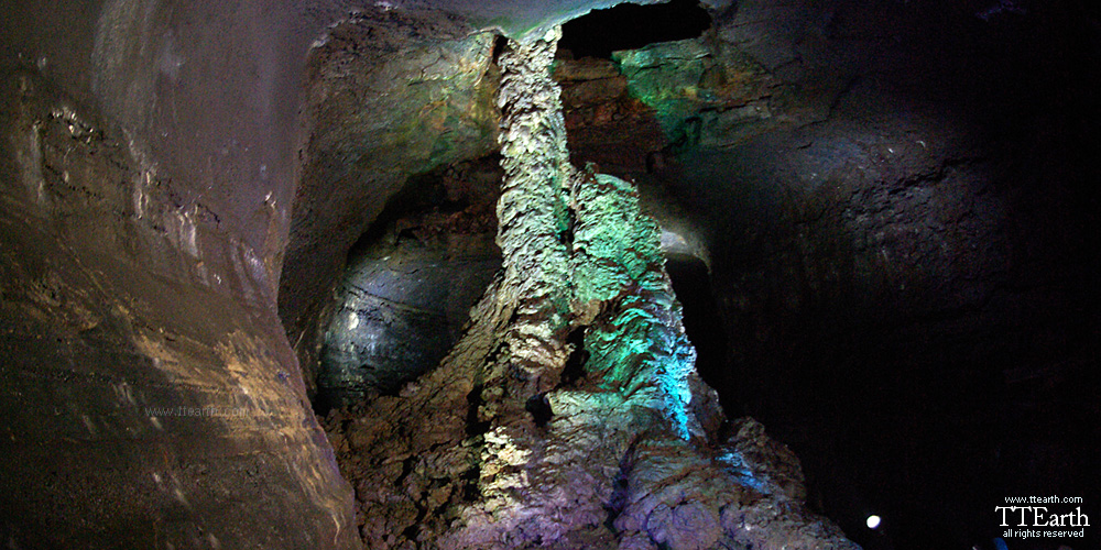 만장굴 공개 구간 끝에 있는 용암 석주. 석주는 돌기둥이란 뜻이다. 높이 약 7.6m로 세계에서 가장 큰 용암 돌기둥이라고 한다. 여기까지가 공개 구간이다.