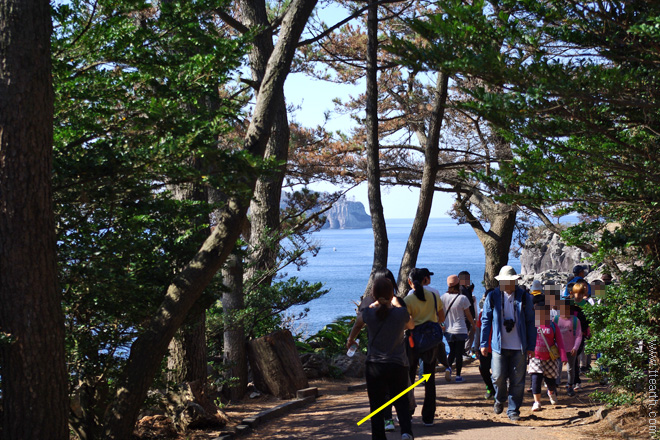 전적비 쪽으로 내려간다. 오른쪽으로 가면 외돌개가 나온다.