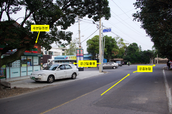 세븐 일레븐 삼거리가 나온다. 직진하면 성읍 농협이 나오고 성읍 마을 관광이 시작된다.