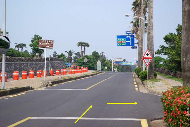 칼 호텔에서 나오면 보목 입구 사거리가 있다.