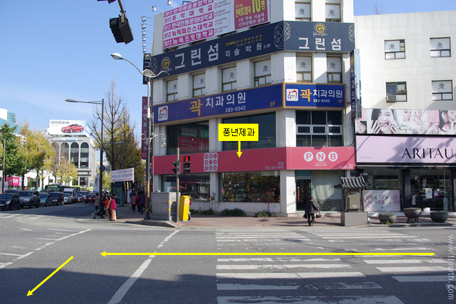좀 더 가면 팔달로와 충경로가 만나는 충경로 네거리가 나온다. 사진의 붉은 색 간판은 풍년 제과 본점으로, PNB가 풍년 제과(베이커리)이다. 1951년 창업한 전병으로 유명한 제과점이다. 이 네거리에서 왼쪽(서쪽)으로 보면 객사가 보인다.