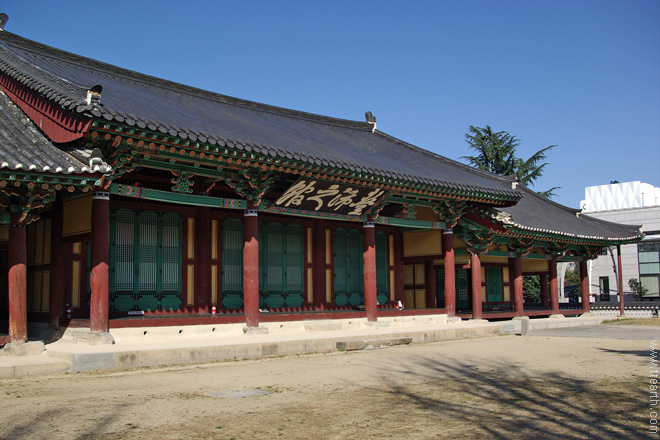 전주 객사는 현재 사진 왼쪽의 주된 건물과 오른쪽의 수직사 두 동만 남아 있다..