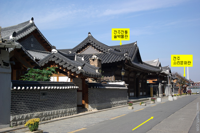 리베라 호텔에서 네거리 슈퍼로 가는 길과 만나는 작은 네거리를 지나 좀 더 가면 전주 전통 술 박물관과 전주 소리 문화관이 나온다.