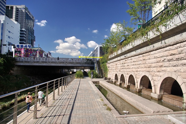 청계천 관광 안내소와 스프링 앞에서 동쪽으로 간다.