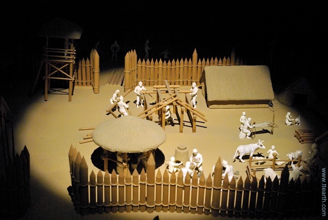 청동기 시대 마을 모형을 통해 당시의 마을 생활 모습을 알 수 있다.