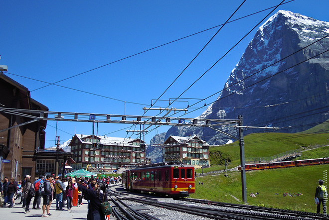 주의할 점으로 인터라켄 서역에는 융프라우로 가는 열차가 없다.
