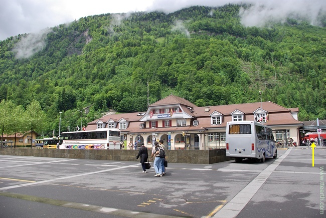 102, 103, 104번 버스 : 인터라켄 동역 버스 정류장에서 내린다. / 102, 103번 버스는 인터라켄 서역으로 간다(7분~9분 소요), 목적지를 물어보고 탈 것.